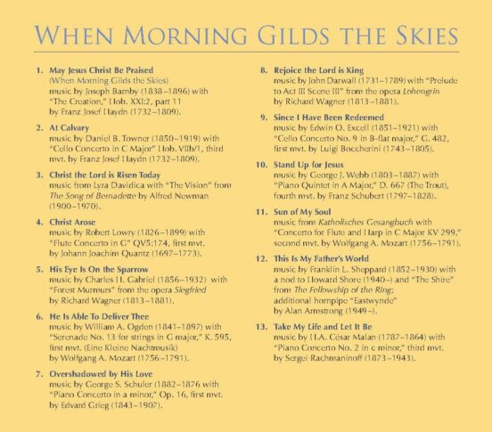 Lochnagar Press is proud to announce the first CD from the creative mind of Dr. Alan Armstrong. “When Morning Gilds the Skies” is a collection of 13 well-known hymns and gospel songs set in the style of famous classical works. Each piece was carefully arranged and orchestrated by Dr. Armstrong to enhance the hymn tune by embedding it in the style of a classical work that shares common melodic, harmonic, and stylistic attributes. Utilizing state-of-the-art virtual instruments from such well-known sources as Spitfire Audio’s BBC Symphony Orchestra, Dr. Armstrong has prepared realistic performances based on his years of experience as a pianist, cellist, and orchestrator. Whether you love the old hymns, enjoy classical masterpieces, or both, this CD is sure to be a blessing and one you will listen to again and again. See below for mp3 demos and purchase information.